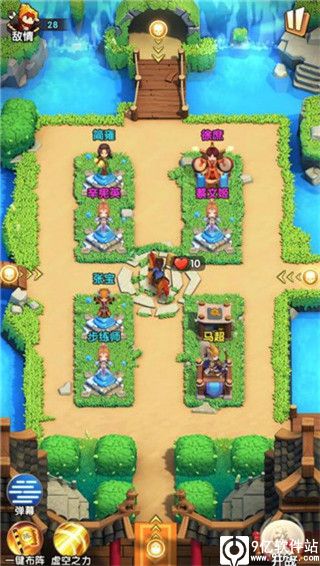 建议:这关重点是上路、下路以及右路的盾兵,调整阵容由法系武将解决