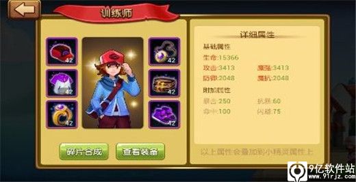 玩家在通关精英副本第一关就可以解锁装备, 装备会穿在训练师身上会提升全体上阵小精灵的大量属性。小精灵弱不怕,我们还有强大的训练师装备。当然我们的装备可以进行强化升级,强化中既不会掉级,也不会损毁装备,玩家可以踏踏实实的提升自己的装备等级,从而获得更强的战斗力。