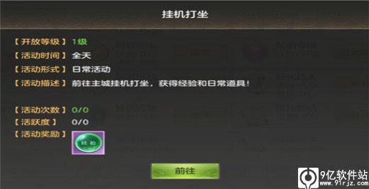 当把所有经验任务做完后玩家可以选择挂机打坐来获得经验,这样的话可以在前期保持等级的领先,起码不会输在起跑线上,而且开服前2天还有等级排行榜,如果有条件的话可以开个VIP4,这样还有额外的VIP加成,可以让你尽可能快的进入前10,这样等级战力两不误,完美。