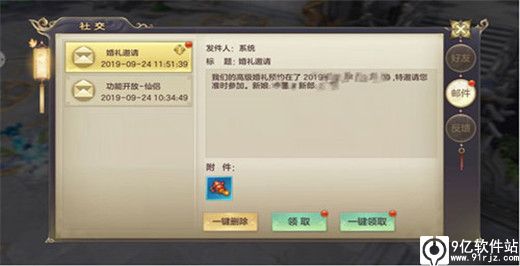 然后我们点击领取(附带一个普通爆竹),到达婚礼时间。我们再打开右上角的“婚礼”方框,然后再点参加婚礼,即可进入剑玲珑官方版的婚礼副本。