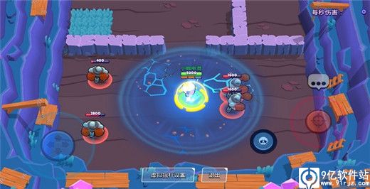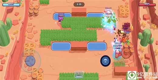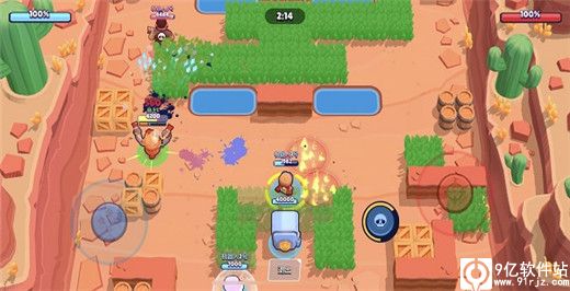 另外荒野乱斗手游中雅琪的普攻范围是圆形的,墙体并不能阻挡其伤害。在开局以后,雅琪还可以通过左右两侧的草丛绕到障碍物的后方,等待敌人靠近以后,直接在障碍物后方进行普攻输出,此时既可以保护自己,又能打出高额伤害。
