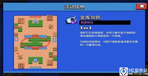 轰隆峡谷是3v3金库攻防模式。竞技模式为将玩家将分为两组进行对抗,游戏任务为保护己方保险柜的同时努力消耗敌方保险柜!率先摧毁敌方保险柜的一方获胜。游戏时长为三分钟,如果对战时间结束时双方都没有摧毁敌方的保险柜,那么,保险柜血量更少的的一方赢得比赛。