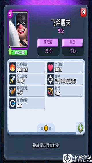 卡组中较肉且单体总伤害不错的AOE单位,回旋斧能造成有效的双倍输出,自身也难被解,不过也当心精锐和火箭等。