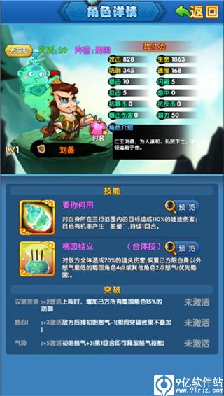 3、刘备——输出型武将,阵营所属:蜀国,成长资质:18,技能:阿斗波动拳。