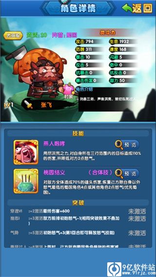 5、张飞——肉盾型武将,阵营所属:蜀国,成长资质:20,技能:阉人咆哮。