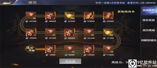 2、每周还有战功相关的国战宝箱,产出很多的元宝、红将碎片和军旗,所以想要富,一定要来打攻城战。
