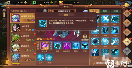 关于技能就是说每个宠物都有属于自己的二三个技能,后续的孔位可以通过获取技能书来解锁更多的宠物技能,同样的技能应用到两种宠物的身上效果是不一样的,非常考验大家的游戏搭配思路。技能也能通过洗练开孔什么的,并且洗练还有概率让宠物变异,瞬间变为稀有宠物,前期材料不多我们不考虑这个。