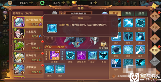 第三个推荐的是“慧心”,该技能是一个被动技能,主要的效果就是减少西海巡司在战斗中释放技能的法力值消耗。大家都知道法力值是释放技能的关键,没有的话就无法使用技能。法力对于法术的输出宠物是很重要的,所以说这个技能也是核心必备的。