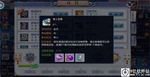 1、打开方式在仙灵外传的主界面日程中,可以轻松发现我们海上贸易的这个选项帮助东海湾的商步启进行货物贸易,每天可以完成一次,可以获得10点活力值