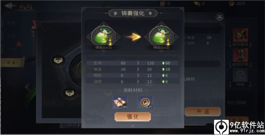 玩家可以消耗材料强化锦囊,提升锦囊的属性。