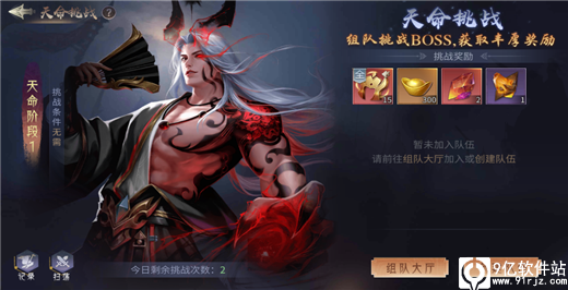 天命挑战是个组队玩法,每人需要上阵两个武将进行挑战,单人挑战也被允许,但只能上阵两名武将加大了挑战难度,挑战成功可获得丰厚奖励,再进一步挑战时,需先养成奇书阶级方可挑战下一阶段,阶级越高奖励越丰富,请尽情叫上队友一起来挑战吧;