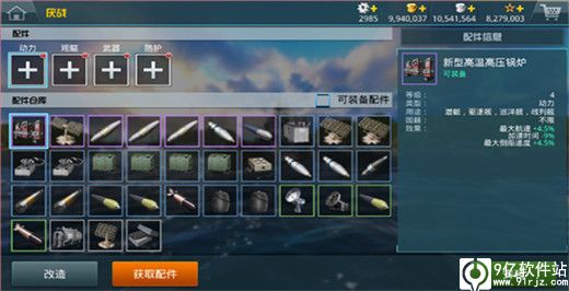 3、配件方面选择最好的就对啦~由于战列舰移动速度慢容易被敌人击中,虽说有不错的防御,但是在配件方面选择更好的加强防御也能让我们的生存更久些,打出更多的输出 。