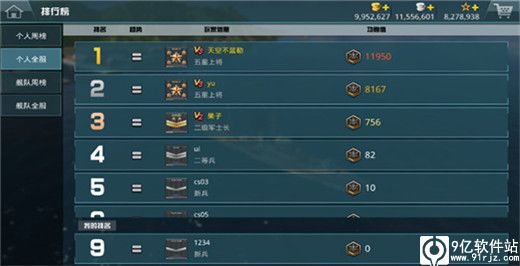 全服排行可以看到各位舰长在整个大区的名次,想获得更高的排名受人崇拜,那就加油的向上冲吧,如果看到排行榜前几名的老司机,快上去抱紧大腿一起飞。
