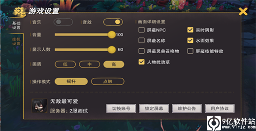 首先,在设置里的操作模式里可以选择摇杆模式或者点触摸式,选择您习惯且舒服的操作模式吧。调整好了操作模式,在下方可以看到画质的设置区域,如果您想要一睹塞尔大陆的美丽风景,就选择超清高画质吧~在右边画面的详细设置里,您可以自由选择想要屏蔽的部分,也可以随意更改场景的一些细节和人物的阴影等设置哟。在设置的最下方,您可以点击切换账号来更换其他账号,不需要下线再重新登录游戏,是不是非常方便呢~