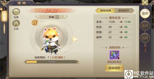 宠物培养:消耗宠物进阶果实可以对宠物进行属性培养,可获得大量属性加成。