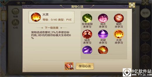 宠物心法:宠物可以学习不同的心法,来获得额外的属性。