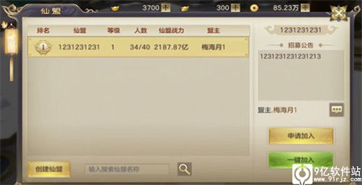 申请入盟:在仙盟界面的仙盟列表中,选择想要加入的仙盟,然后点击右下方的申请加入按钮,即可发出申请,也可以点击一键加入,同时向所有显示出的仙盟发出入盟申请。
