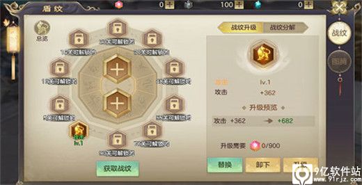 战纹升级:可消耗战纹精华升级战纹,提高属性,剑玲珑gm版战纹精华可通过战纹卷轴和分解战纹获得。