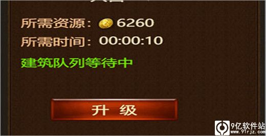 2、点击升级就可以花费资源升级建筑了。每次升级都需要一定的冷却时间。如果领主们短时间内有大量升级需求的话,可以使用钻石加快这一进程。
