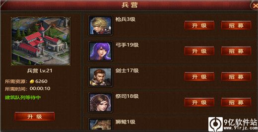 2、左下角的兵营,升级后可以提升士兵的等级。在兵营到达一定等级后,还可以解锁更强力的兵种。