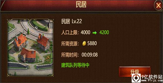3、与之对应的是民居,提升等级可以增加人口数量,从而招募更多士兵以形成更强大的战力。