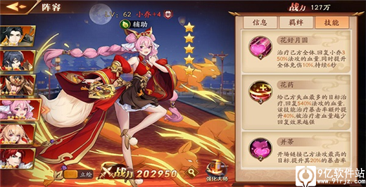 1、玄水磐阵:战斗开始时,在一段时间内己方全体免伤提升。