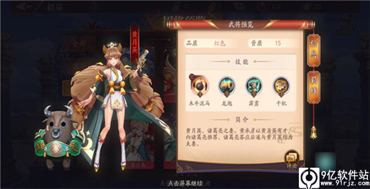 武将:黄月英; 性别:女; 所属国家:蜀; 品质:红; 资质:15。