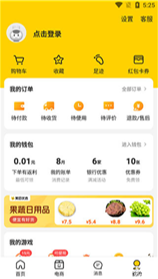 3、电商页面,就是一个购物平台,吃货必点、时令鲜果、今日必买、省钱日历、瞧瞧等热门推荐;