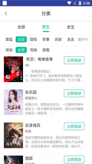 1、【正版免费】正版小说,免费阅读。热门分类,都市爽文、言情穿越、玄幻修仙、武侠世界……你想看的这里都有。