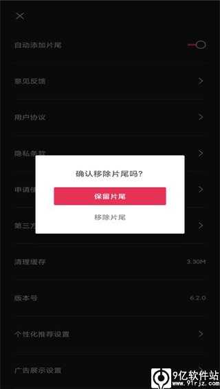 4、再关闭自动添加片尾功能后点击“×”退出设置