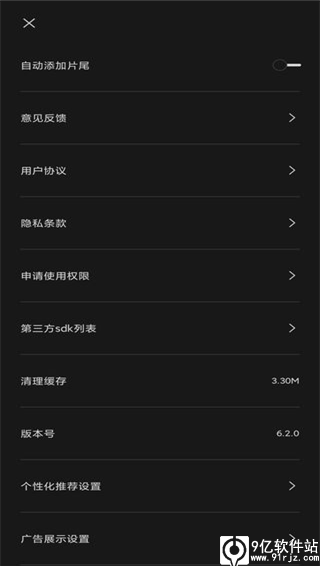 3、打开【设置】界面后点击“自动添加片尾”右侧的按钮就可以关闭自动添加片尾功能
