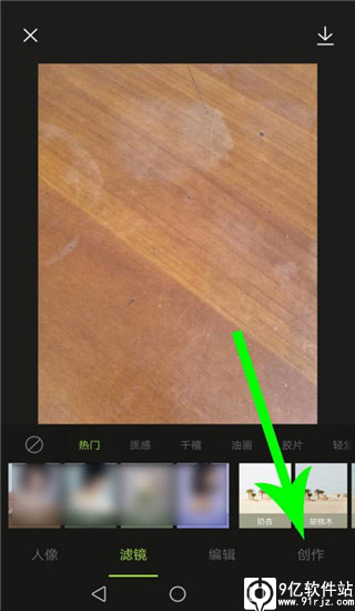 1、首先我们需要进入我们的APP导入一张图片点击【创作】