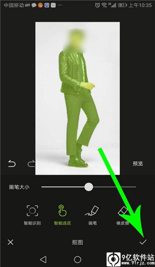 6、智能识别开启后选中的区域就会变成绿色,选中完毕点击“√”