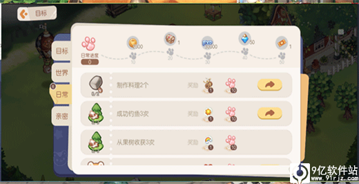 在奥比岛梦想国度官方版手游主界面头像下方,可以看到【目标】,找到第三行的【日常】,就可以看到目前的日常进度啦。当日常任务进度达到60时即可领取大量经验(获取量随等级增长),同时也可以积攒很多材料,装扮家园什么的就有基础啦,可谓佛系玩家福音~