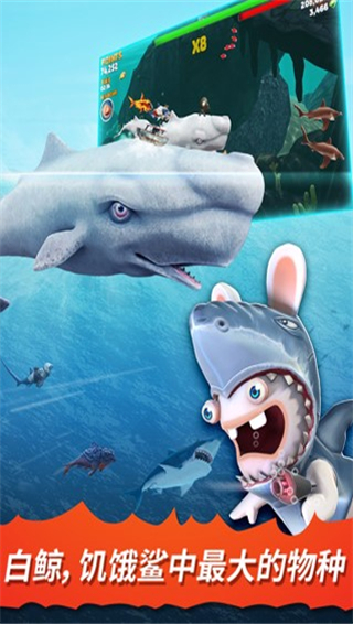 饥饿鲨进化九游版是一款快节奏的模拟鲨鱼游戏,游戏由育碧旗下的工作室开发,采用真实的物理引擎渲染,结合饥饿游戏的玩法,带给玩家一场刺激的游玩体验。在这款游戏中,玩家将会扮演一条大白鲨,在海里尽情掠夺各种动物作为自己的晚饭,并在不断吞噬中变得更大,去攻击更巨大的敌人并将其作为盘中餐。最终和全网玩家比拼谁才是巨无霸鲨鱼。