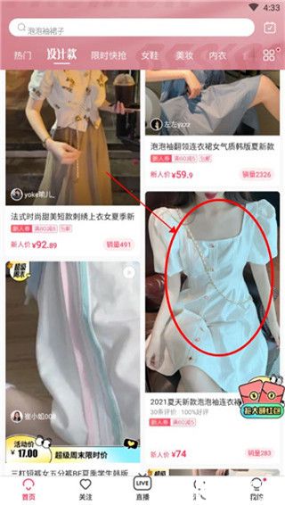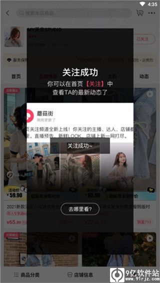 1、进入蘑菇街app官方版后点击你想关注的店铺商品
