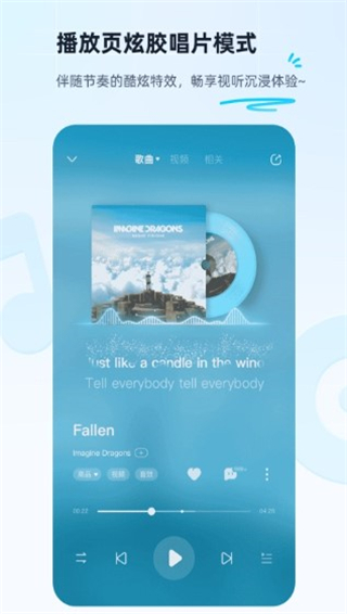 突破性地引入歌手写真切换特性,歌词伴随歌手写真同时展示,效果能与MV媲美