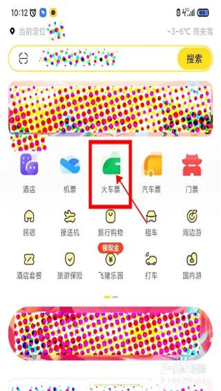 1、进入飞猪App首页,点击功能列表中的【火车票】。