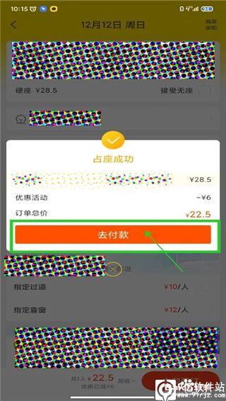 6、等待系统占座成功,点击【去付款】。