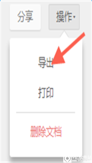 这是一款可以在线处理文档的软件,很多小伙伴不知道把文档处理好了以后怎么导出来供自己使用,下面小编来教教大家把!1、首先,打开这款软件后,点击文档右上方的“操作”按钮,在弹出的下拉菜单中点击“导出”;