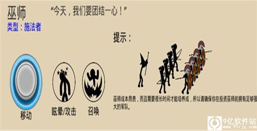 巫师:巫师能够释放魔力,对敌人造成范围性AOE伤害,但巫师的成本造价高,训练时间长,所以请确保你能有足够的训练时间。