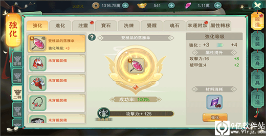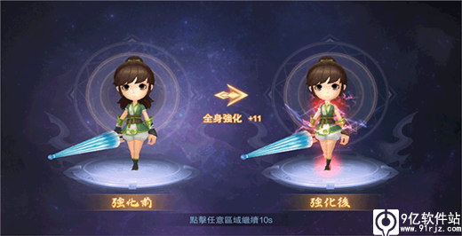 选择需强化的装备后,点击“强化”按钮即可对当前装备进行强化升级,全身装备强化等级累积至一定等级可获得强化加成,点击“强化加成”按钮可查看强化等级加成规则。