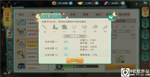 注灵石只能通过勾玉购买获得,点击注灵后可以为装备进行注灵,注灵不仅可以获得海量属性,当全身注灵等级达到一定条件时,还能启动注灵大师的属性。