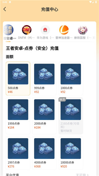 3、如果你有优惠券的话还可以使用优惠券享受低价的充值