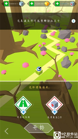 10%这个数字被两排小栅栏夹在一起,如果是第一次玩这个关卡的玩家,我建议是不急着吃第一个钻石,钻石悬浮在河面上,在未知的桥路面下,咱们还是别冒这个险,掌控了整个关卡的大框之后再重新吃也不迟。