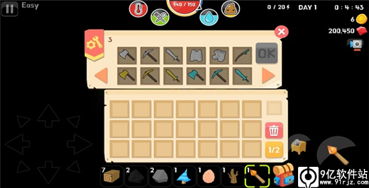工作台里可以建造各种工具,斧头锄头剑鱼竿,还有可以减少伤害的盔甲鞋子。铁砧可以修补工具。目前为止我只做了剑盔甲鞋子铁砧鱼竿吧。剑用来捕猎和晚上K拆迁队。盔甲和鞋子做好记得拖到背包左上角穿上。鱼竿感觉没什么必要,因为根本没时间钓鱼。锄头和斧头应该可以提高采集资源的效率,但是耐用度不高,又费资源,所以我一直用都石头。(我觉得还是应该用工具的,不要学我作死)