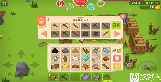用到最多的资源就是木头和石头,所以看到树和石头要狂砍。其次是铁,煤,沙子。沙子前期采一些够做10个左右瓶子就好,铁和煤用于建造和升级你的房子、武器和各种设施。还有就是骨头,做陷阱需求量也很大,后期很难找,所以看到就收。金银、钻石、红黄绿石在后期会用到,按需采集就好。有时候会遇到宝箱,里面会随机掉资源。