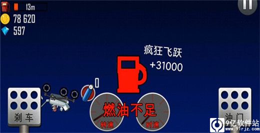 4、等到燃油快要没了的再松手让其下降,这个时候就能看到金币蹭蹭的涨。