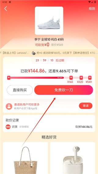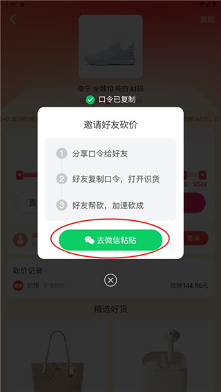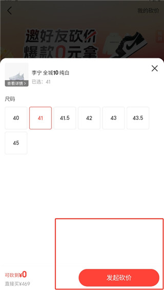 2、选择好你需要免费拿的鞋子、鞋码,点击发起砍价