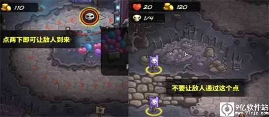 其次是输赢机制,敌军会从骷髅图标处出发,去往旗帜标注的道路尽头。